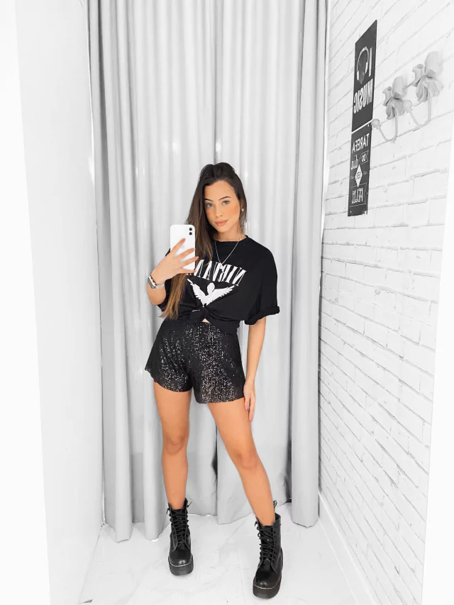 DESCRIÇÃO: Short de paetê com elástico na cintura.
