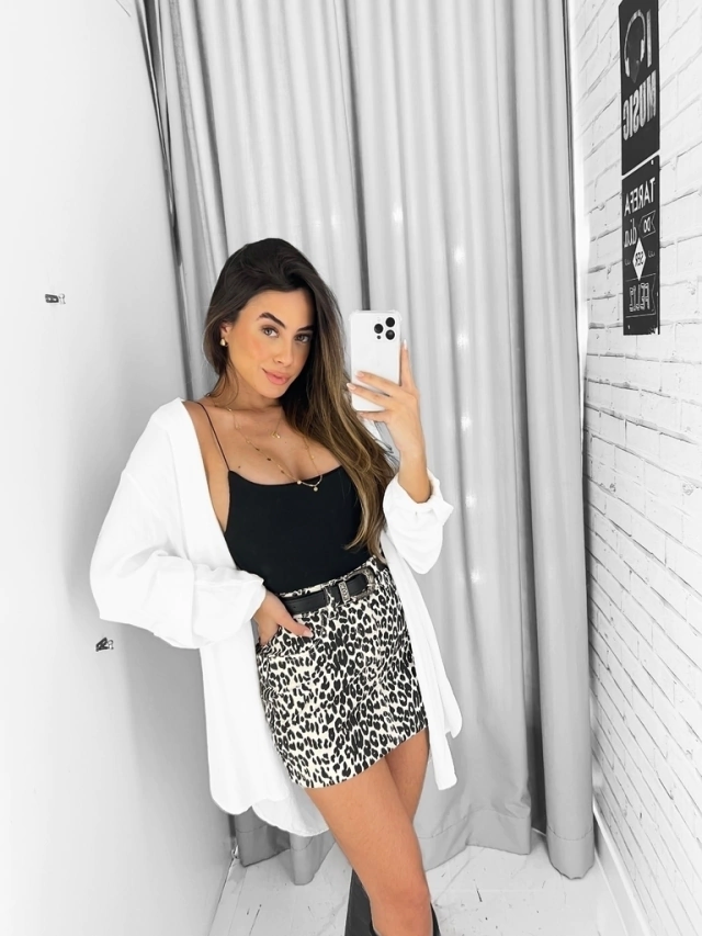 DESCRIÇÃO: A Saia Jeans Animal Print é uma peça de roupa feminina que combina a versatilidade do denim com a ousadia da estampa animal. A Saia Jeans Animal Print é uma peça que combina estilo e praticidade. Ideal para criar looks cheios de personalidade, pode ser combinada com uma variedade de tops, camisas ou blusas, criando visuais casuais ou mais sofisticados, dependendo da ocasião.